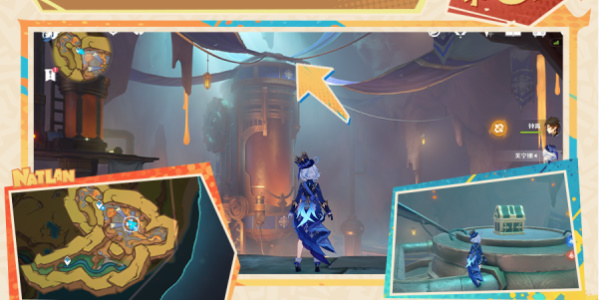 2、来到【火榴树】的地下洞窟,附身匿叶龙来到遗迹下层,拉取钩索,借助平台来到上层,在左手边发现一个华丽宝箱。