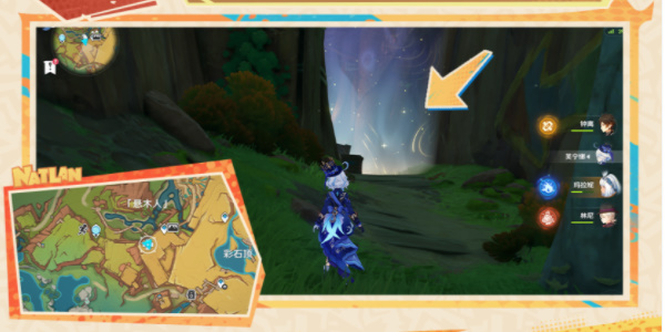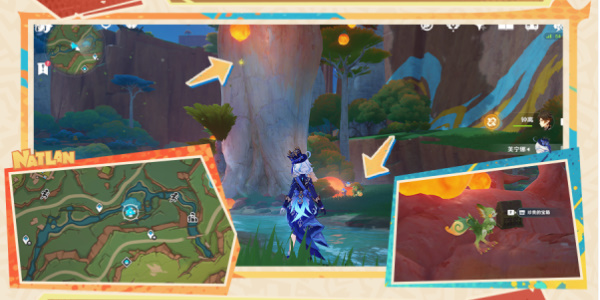 7、来到火榴树下面,附身匿叶龙,借助符印来到树顶即可开启一个珍贵的宝箱。