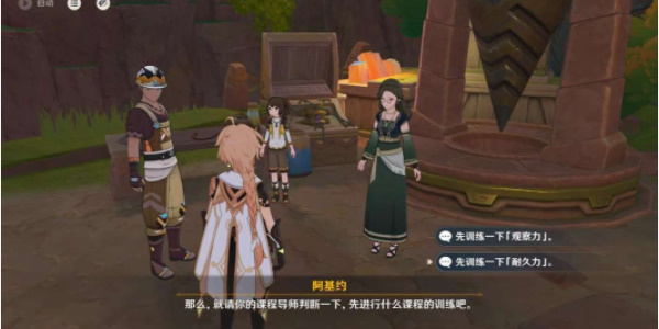 玩家接取到该任务后,分别有两个训练,我们2选1,完成1次即可获得成就,训练1是观察力,需要玩家挖掘出埋藏的目标机关;训练2是耐久力,玩家需要迅速抵达目标点。