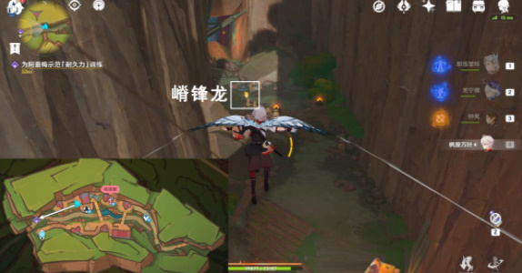 2、往地图的东南方向下飞,附身嵴锋龙,使用战技钻地,往地图的南方向走。