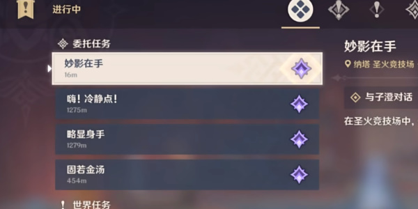1、玩家在纳塔的每日委托中接取岛任务妙影在手。