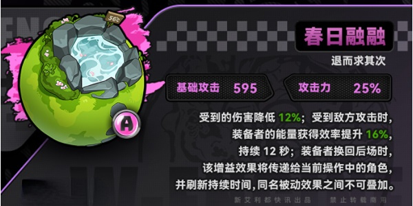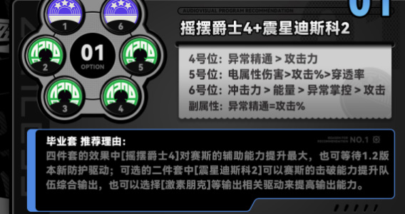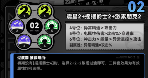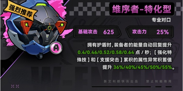 可以将赛斯的使用率最高的2个技能提供到了和异常角色相同的异常积蓄级别,也是赛斯能作为副C的核心装备,同时高额的能量回复也能使得赛斯开出更多E从而强化击破能力。