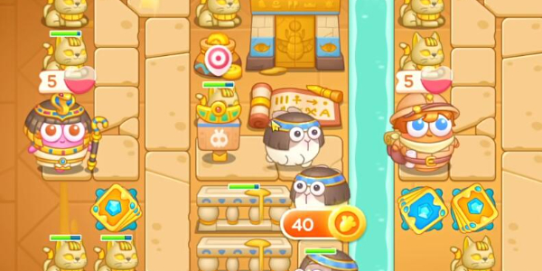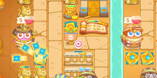3.放置第三个卡牌炮台,随后标记下方的障碍物进行攻击,有金币就给卡牌进行升级。