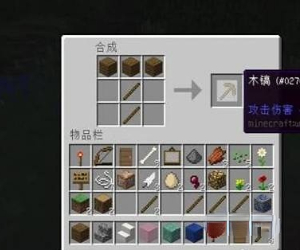 1、合成铁砧需要用到铁,我们先准备好工作台,如何用木块合成木板和木棒,然后用木板和木棒合成木镐,使用木镐挖取石头。