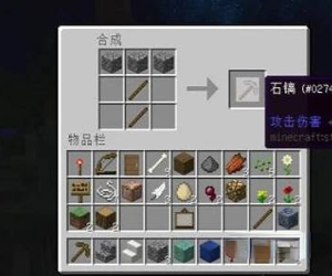 2、在合成台中使用挖取的石头与木棒合成石镐,用了石镐就可以去挖取铁矿。