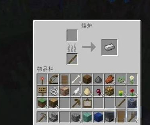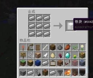 4、在熔炉中将铁矿石熔炼成铁锭,接着在合成台中将铁锭合成为铁块,一个铁块需要九个铁锭合成。