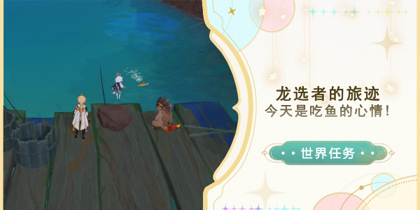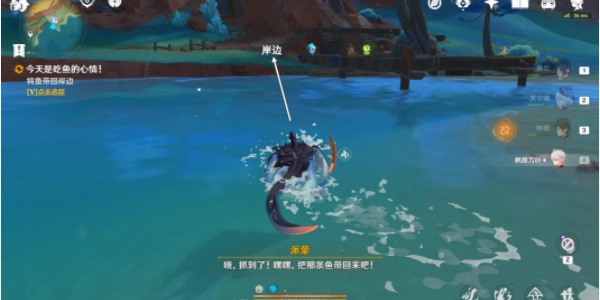 6、在岸边与派蒙对话结束后就完成任务【今天是吃鱼的心情!】,并获得成就「谢谢你们的鱼」。