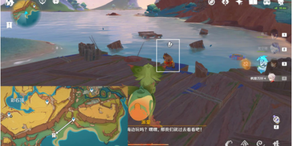 我们传送到彩石顶东南方向海边锚点,往地图的西南方向走,靠近自己的龙伙伴,触发对话接取任务。