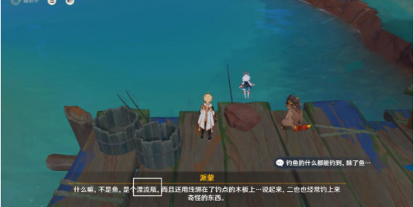 3、接着与派蒙对话,阅读漂流瓶内的纸条。