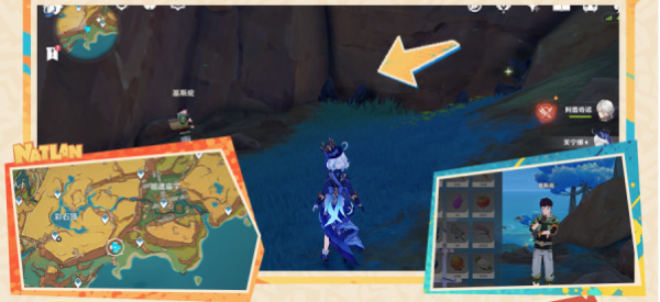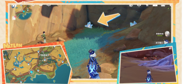 3、第三天同样来到这里,挖掘山脚的矿石,之后与基斯庇对话,交付万相石,没有万相石的玩家可以去须弥一铁穆山南边的锚点旁挖掘。