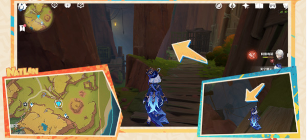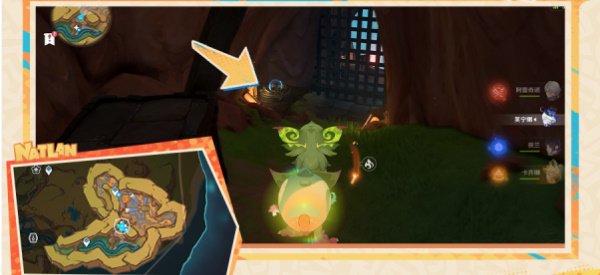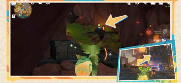 5、之后击败背后的愚人众,向南进入洞窟;来到下图这个位置,在右上方的平台附身匿叶龙。