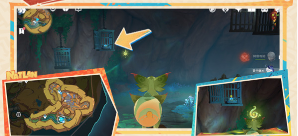 1、来到地图祖遗庙宇的东边的传送锚点,然后从裂缝处深入洞窟,再从洞口跳下去,击败下面的愚人众,开启宝箱获得钥匙,使用钥匙开启运龙车救出匿叶龙。