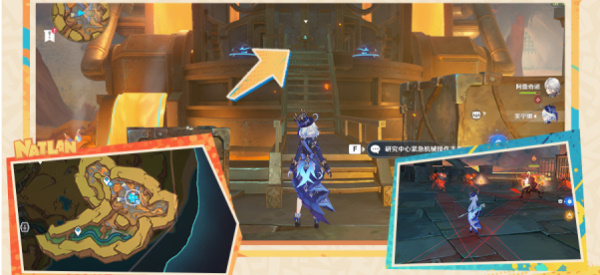 7、接着再回头吸取底座上的球,将其发射到巨大装置前的底座上;之后关闭装置,坚持60s,即可获得成就【正义的反抗】。最后击败出现的愚人众讨债人,还能获得一个华丽宝箱。