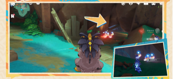 5、再来到左手边附身峭锋龙,进入裂隙,跟随面前的幻写灵进入洞窟,快速穿过地上的爆炸区域,将其全部引爆。
