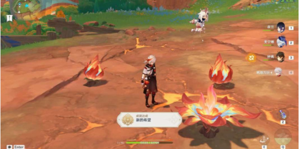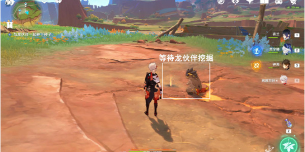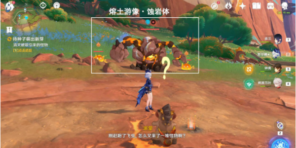 1、原地等待龙伙伴挖掘后对话,然后攻击6只被吸引来的燃素蜜虫,熔土游像·蚀岩体和火史莱姆。