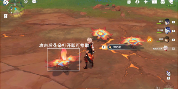 5、想要采集烬心花需要攻击后花朵打开才可以拾取。