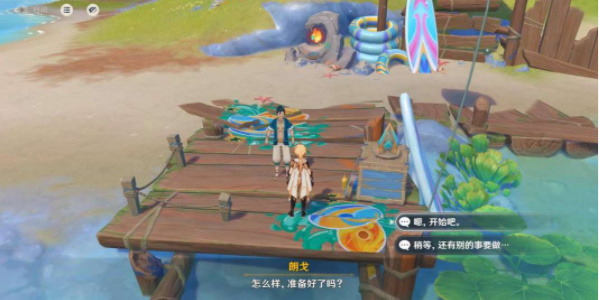 2、接着返回海滩与朗戈对话,选择“恩,开始吧。”,开启限时挑战,限时挑战任务是需要玩家在600秒内手机25个火之微粒,完成限时挑战后可以获得亮闪闪的贝壳②。
