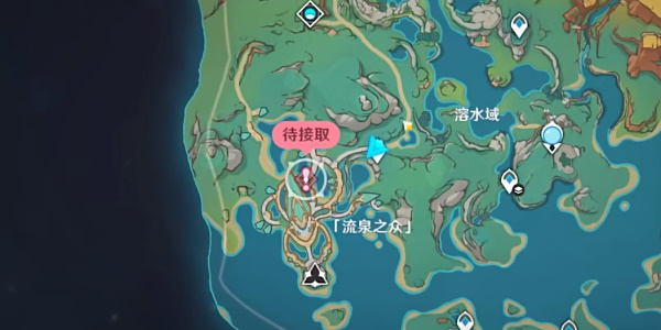 1、玩家在完成流泉所归之处系列任务的第一、二幕后打开地图可以发现在流泉之众部落出现粉色感叹号,我们前往任务接取地点触发任务。