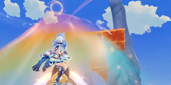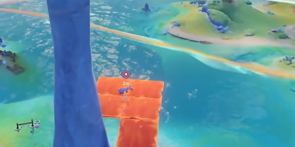 2、跟随任务指引玩家来到岛上启动两处燃素节点,其中一处节点在高空中,玩家可以击碎旁边的石堆出现一处机关,攻击一下机关既可以出现一条道路。