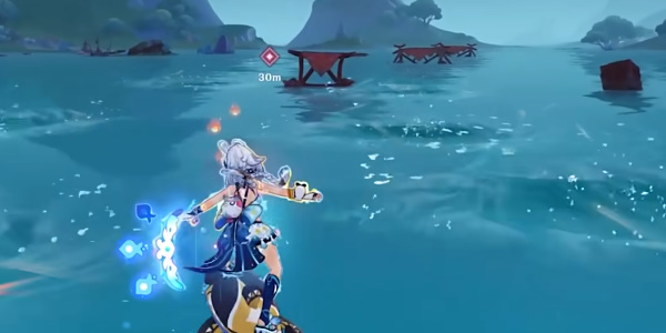 4、完成游隙灵道挑战后继续操作玛拉妮在海中滑行,在76秒时间内前往维兰德落水的地点进行营救,途中会出现各种漩涡以及障碍,需要玩家及时躲避。