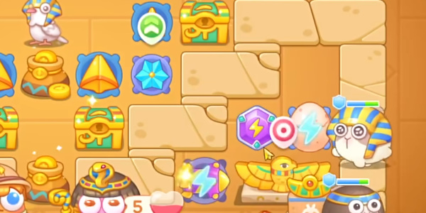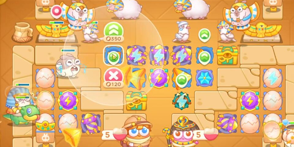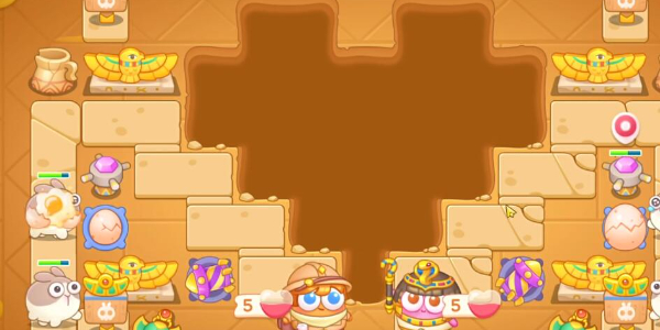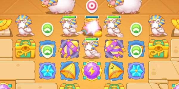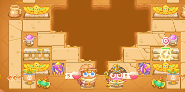 2.将障碍物清理以后放置蛋壳进行升级,再将左侧的障碍物进行清理,同样放置蛋壳,再将右边的粉色开关清理掉。