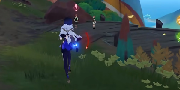 1、玩家来到稀土标记的传送锚点,然后前往图中标记的粉色感叹号所在位置,找到两个小朋友进行对话接取任务。