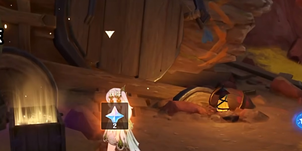 2、在峡谷底部我们遇见一个冰元素愚人众,将其击败后开启旁边的普通宝箱获得一把钥匙,然后使用钥匙打开旁边小屋的门就会触发一段剧情。