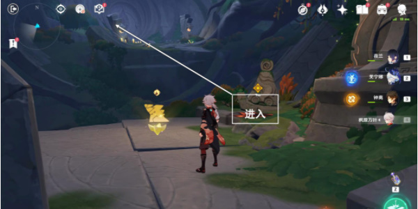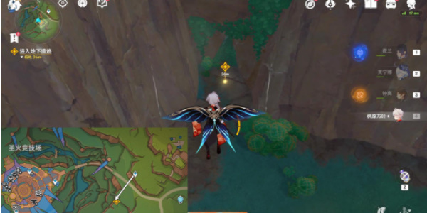 1、玩家跟随任务指引传送圣火竞技场东南方向锚点,前往山崖下秘境。
