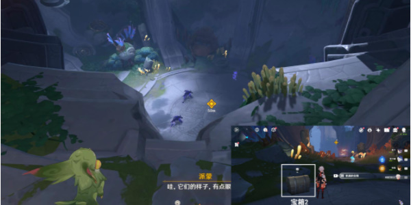 6、往地图的西方向走,魂烛魂附嵴锋龙,交互“进入”,自动前往对面通道;往地图的南方向走,击败丘丘人;最后往地图的东方向走,获得一个精致宝箱,至此该副本的宝箱就全部收集完成,最后可以启动机关继续往副本深处探索。