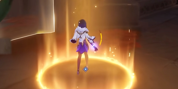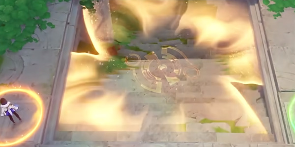 2、来到遗迹入口清理周围的魔物,然后放置护符,接着将角色和小龙分别站在左右两个光圈中打开入口屏障。