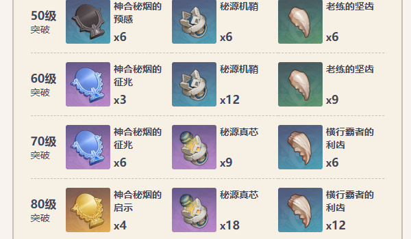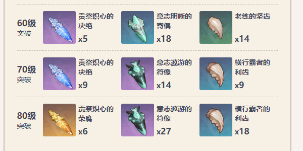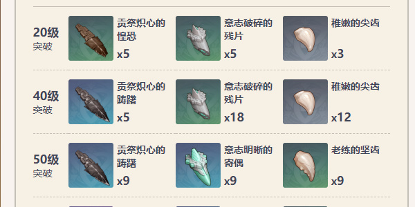稚嫩的尖齿*10、老练的坚齿*15、横行霸道的利齿*18