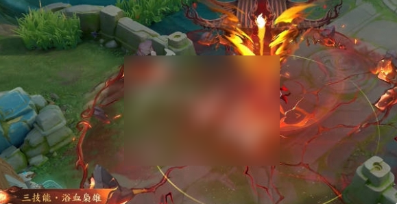 4、二技能:刀光裹挟万钧之势向前突进,地面崩裂,焰爪自灼热裂隙中探出。