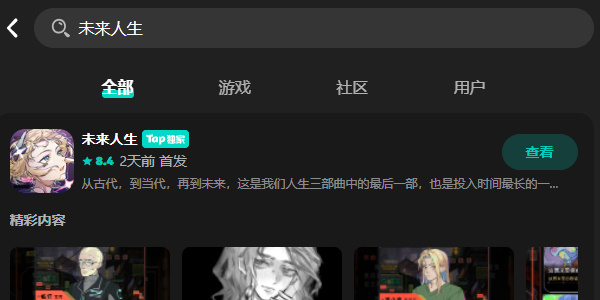 2.下载安装完成以后进入软件,在上方搜索栏搜索未来人生,点击右侧的查看。