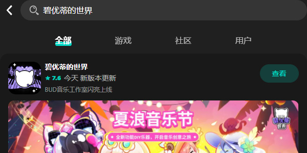 2.下载安装完成以后点击进入软件,随后在上方搜索栏搜索碧优蒂的世界,点击查看。