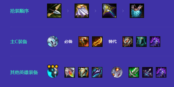 抢装顺序:反曲之弓、负极斗篷、暴风大剑、锁子甲