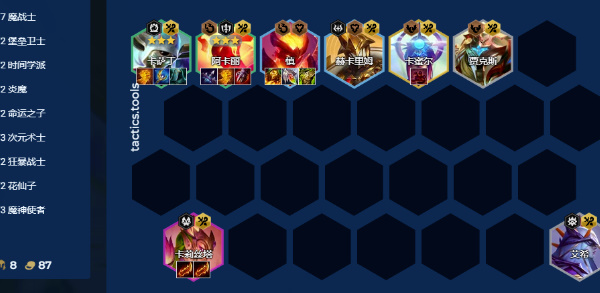 7魔战士/2堡垒卫士/2时间学派/2炎魔。