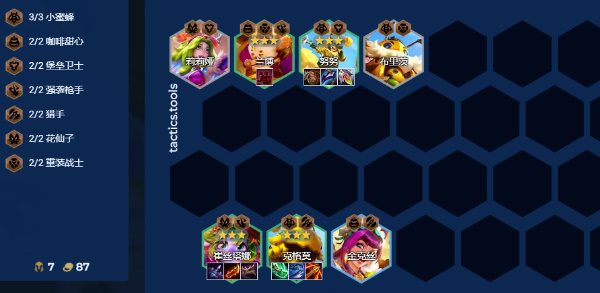 3小蜜蜂/2咖啡甜心/2堡垒卫士/2强袭枪手/2猎手/2花仙子/2重装战士。