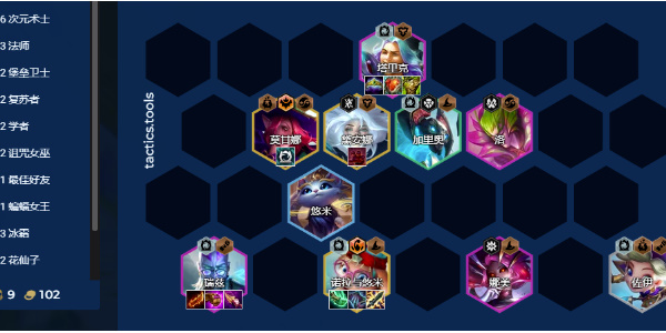 连胜4-2速八级搜卡稳血,然后上九补齐质量。建议玩家在铲子局或者有次元转时玩!有转后这套还是很给力的莫甘娜+洛的组合也可以换成塔姆+泽拉斯,前提是泽拉斯二星且有装备。