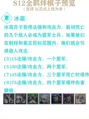 冰霜弈子获得法强和攻击力。最初死亡的几个敌人会成为盟军士兵,如果他们在射程和重定目标范围内,他们就会引诱敌人攻击。