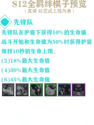 先锋队在护盾下获得10%的生命值。战斗开始和生命值为50%时获得护盾,维持10秒的生命上限。