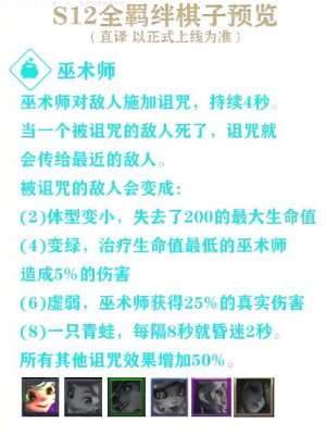(4)变绿,治疗生命值最低的巫术师造成5%的伤害。