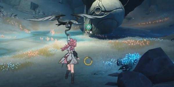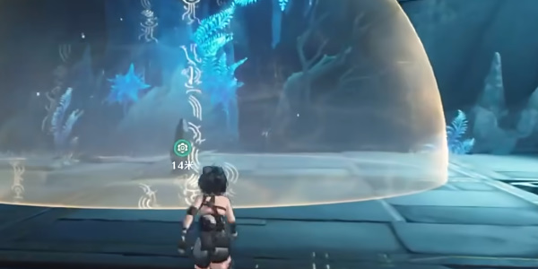 7、第三个防御节点被防御屏障包围,玩家只需要使用远程输出角色击碎墙上的花就可以解除屏障;然后击败声骸怪物开启第三个防御节点。