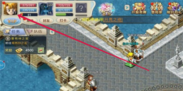 1.点击进入游戏,随后点击左上角个人头像进入角色信息。