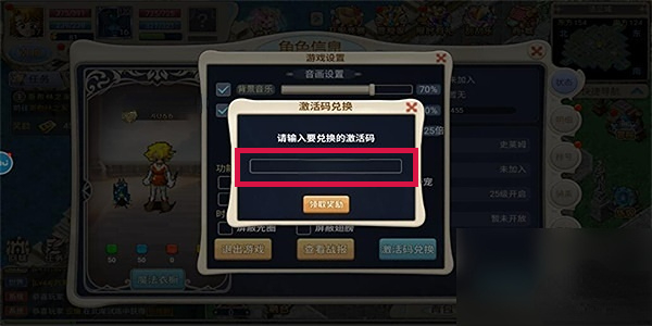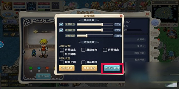 2.在角色信息栏找到设置,点击激活码兑换,进入兑换页面。