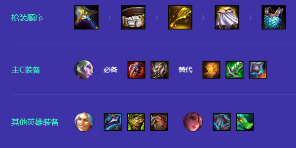抢装顺序:暴风大剑、巨人腰带、金铲铲、负极斗篷、锁子甲