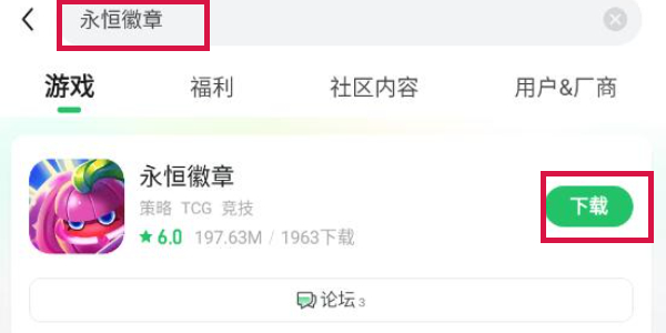2.下载安装成功以后打开进入软件好游快报爆,随后点击上方搜索栏搜索永恒徽章,直接点击右侧的下载即可。