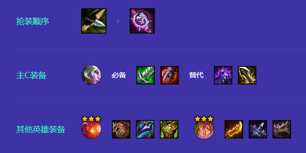 克制低费的辛德拉、小炮,整体阵容培养难度较大,但是全9人都2星以后基本能保证登顶胜利。