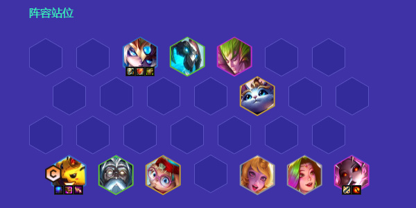 基兰和薇古丝小法,站在同侧可以秒掉前排,娜美站右下角可以控制到更多的敌人,主C站在左下角。