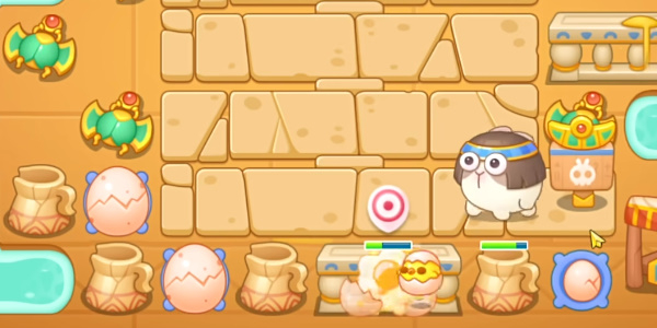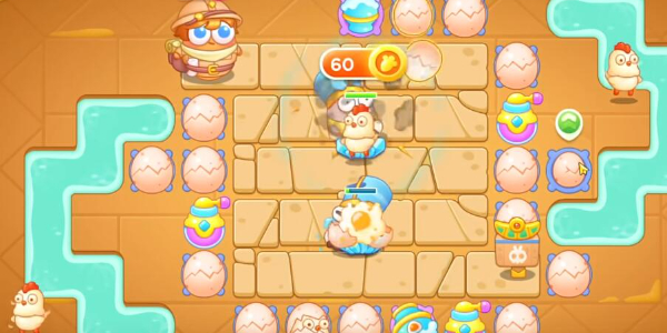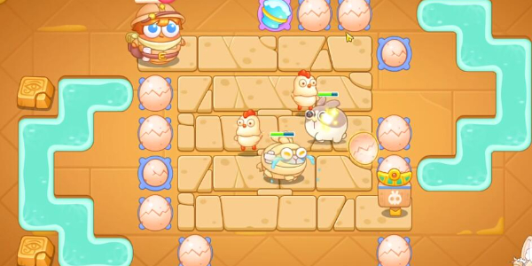 1.在指定位置放置蛋壳,并将下方的蛋壳升到满级,上方的蛋壳升一级,上方的蛋壳负责清理附近的障碍物。