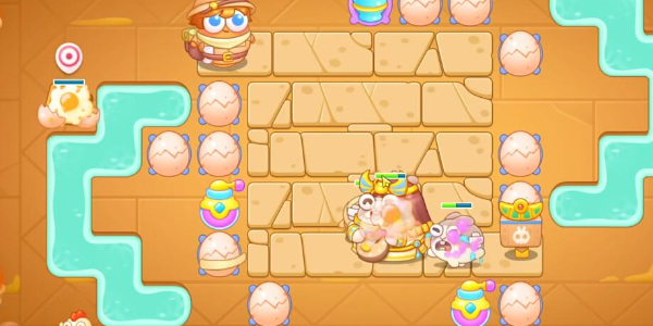 3.清理完成以后在下方左侧一点,还有右侧下方分别放置蛋壳,左侧的优先升级,将正下方的障碍物进行全面清理,随后再清理右侧全部的障碍物,并给右侧的蛋壳进行升级,再将左下方的障碍物进行清理。